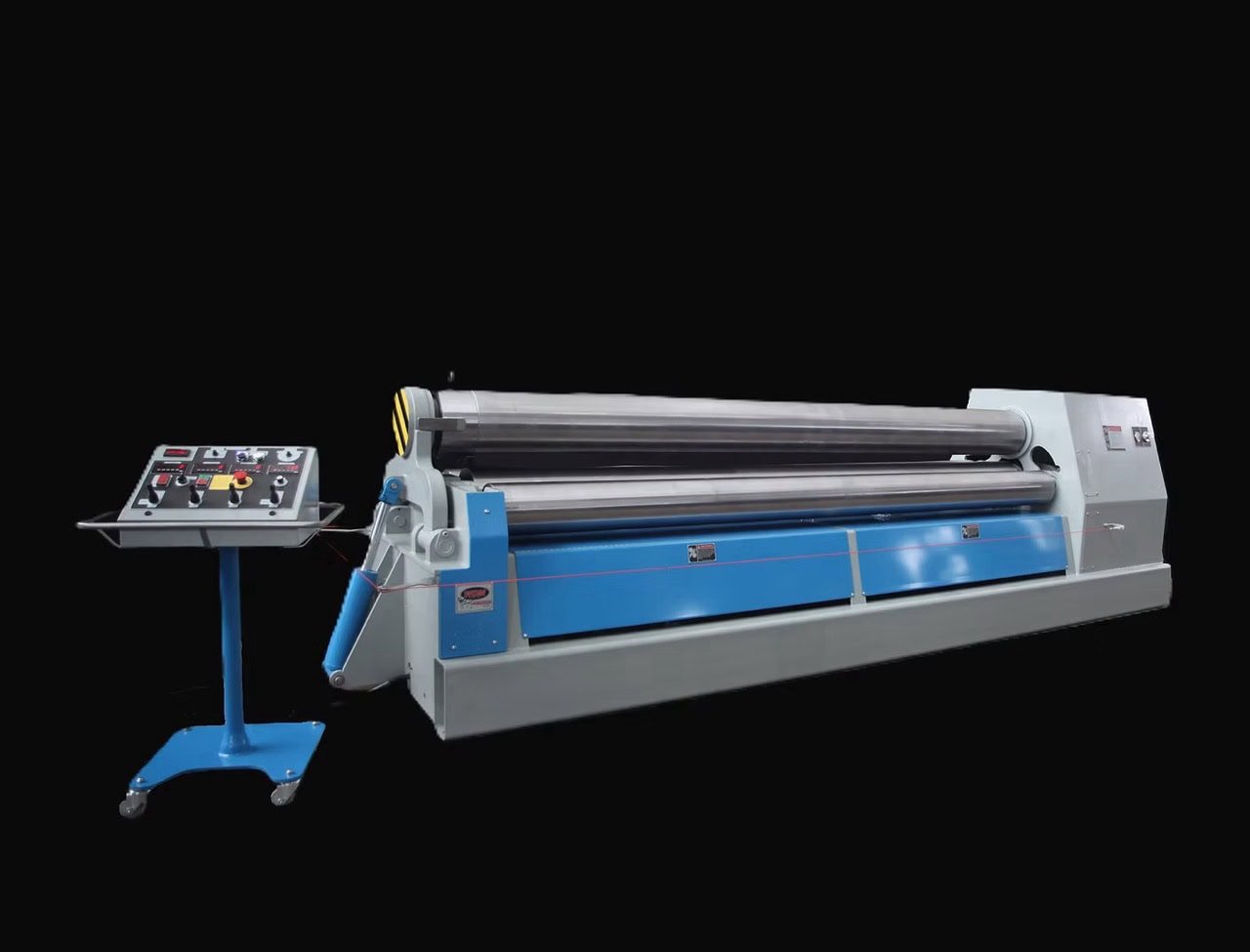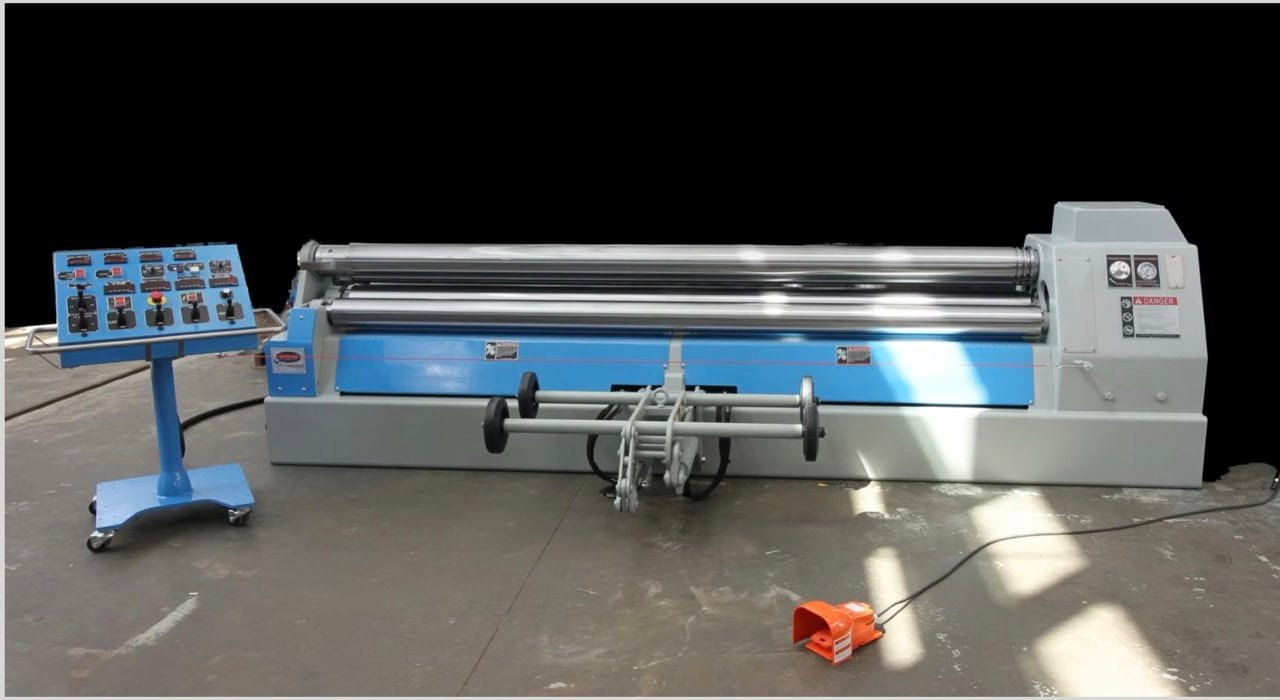 Rated Capacity: 0.41″ (≈10.4 mm) mild steel, up to 8′ (2.44 m) width Top Roll Diameter: 10″ nominal Roll Material: Flame‑hardened/polished 1045 carbon steel, machined to ~63 µ″ finish Drive System: Hydraulic LSHT motors; 2‑roll drive with hydraulic instant start/stop/reverse Motor Power: 10 HP, TEFC, 230/460 V, 3‑phase Roll Speed: Infinitely variable, 0–22 ft/min Controls: Beta 4 pendant or auto 4.2 […]