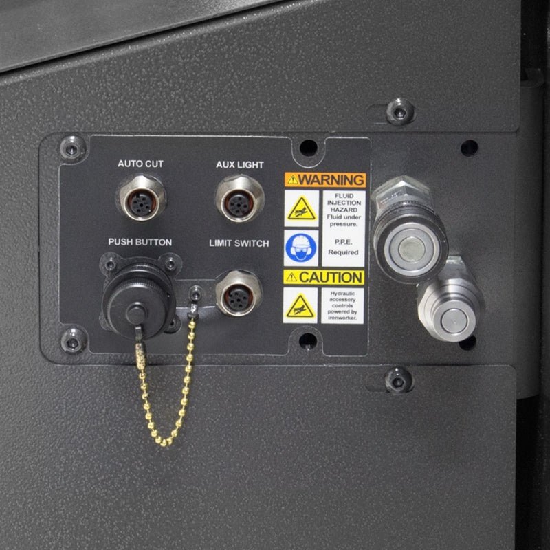 The optional PowerLink System allows your Ironworker to act as a power source to our expanding line of innovative PowerLink Hydraulic Tools, such as the 10 Ton Tube/Pipe Bender, 20 Ton Shop Press and 40 Ton Shop Press.