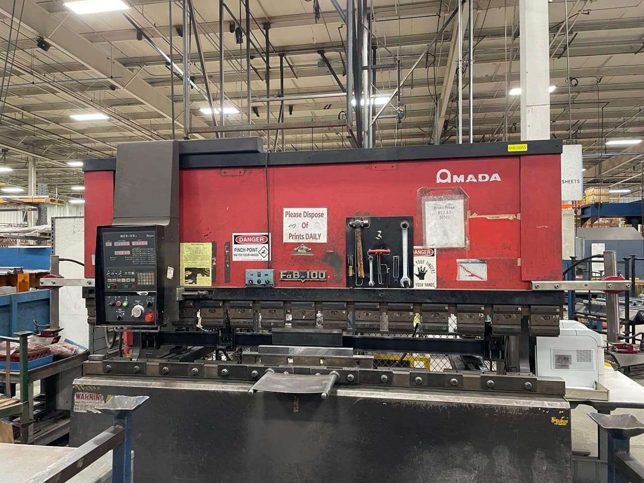 Tonnage: 110 Tons Overall Length: 122″ Between Housing: 106.3″ Stroke: 3.94″ Open Height: 14.57″ Throat Depth: 15.75″ Weight: 15,500lbs Dimensions: 12′ x 5.5′ x 9’H Equipped with: NC9-EX II Control