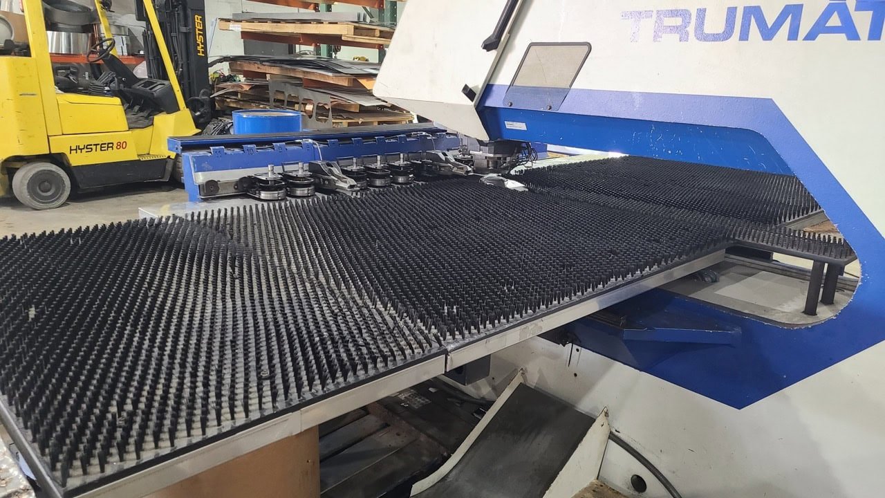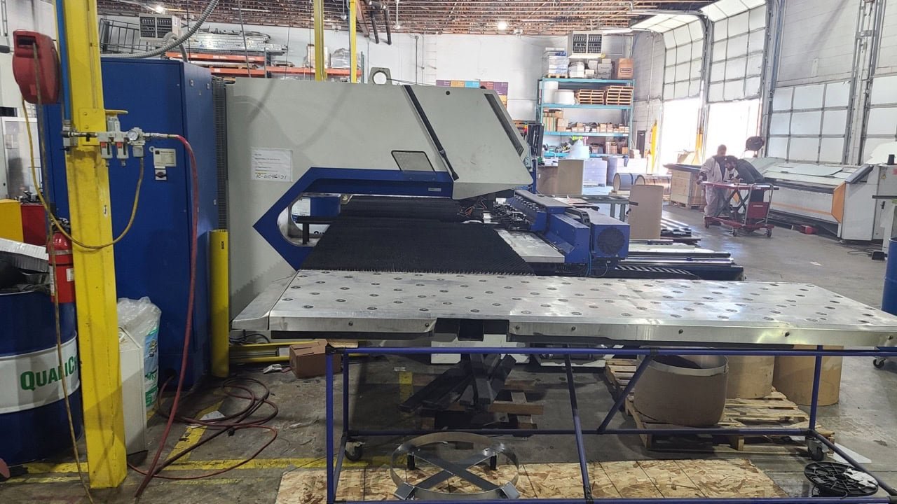Table L: 50″ Table W: 50″ X-Axis: 50″ Y-Axis: 50″ # Turret Stations: 9 Max Sheet Weight : 165 LBS Max Material Thickness: 0.25″ Stroke Rate (1mm pitch): 900 L/MIN Stroke Rate (25mm pitch): 420 L/MIN X-Axis Speed: 35×43 IPM Y-Axis Speed: 2362 IPM X/Y Simultaneous: 4251 IPM Rapid Traverse (X/Y): 3550 / 2360 IPM […]
