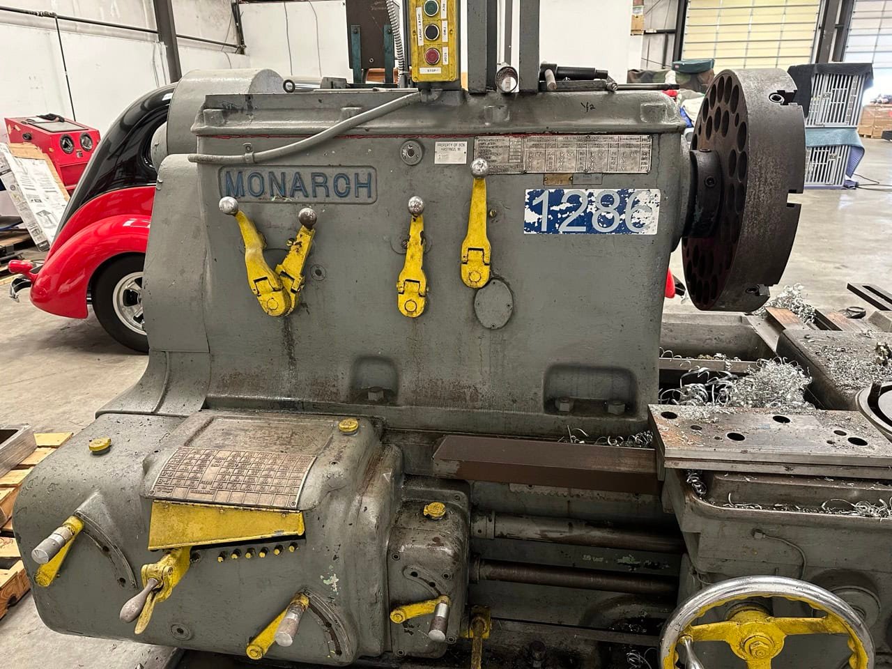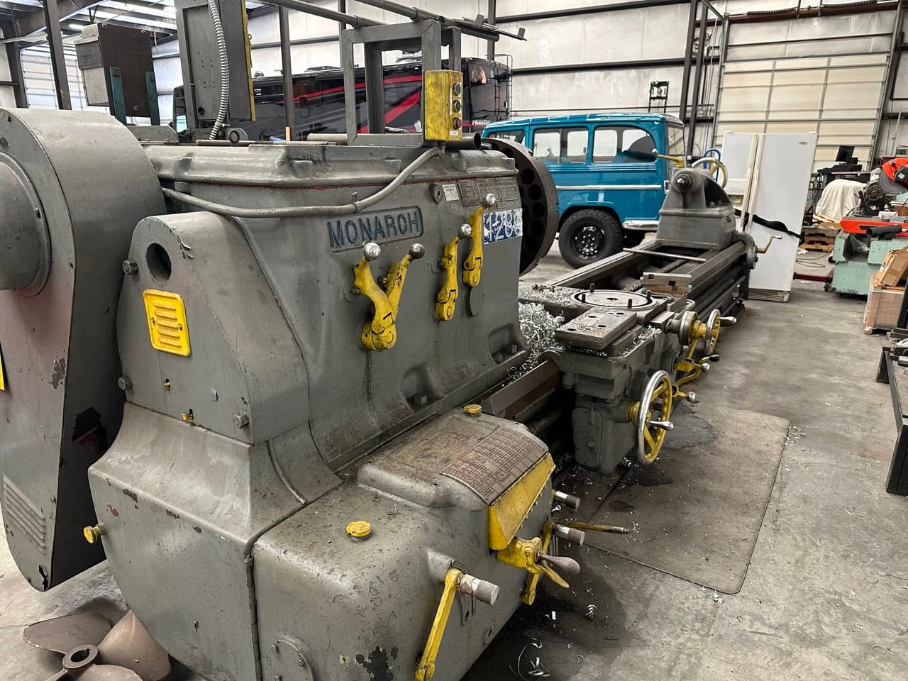Swing: 44.5″ Distance Between Centers: 132″ Spindle Speed Range: 3.4-1763 RPM Equipped With: 24″ 4-Jaw Chuck Tailstock