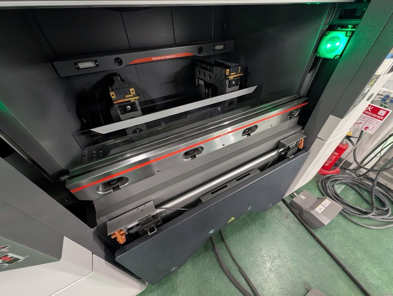 Ergo tool and bend equipment cabinets/.shelfs on each side integrated into the machine housing