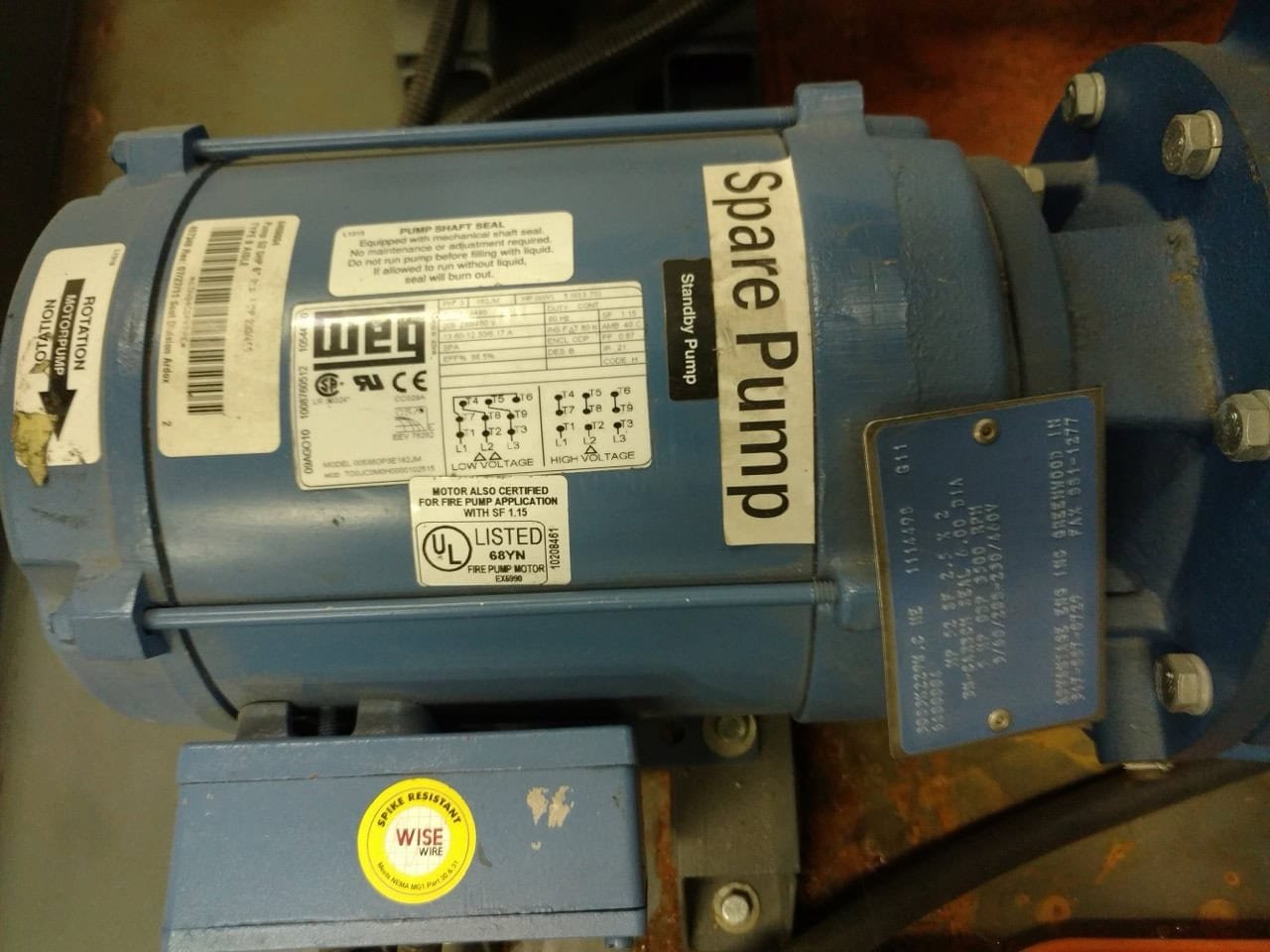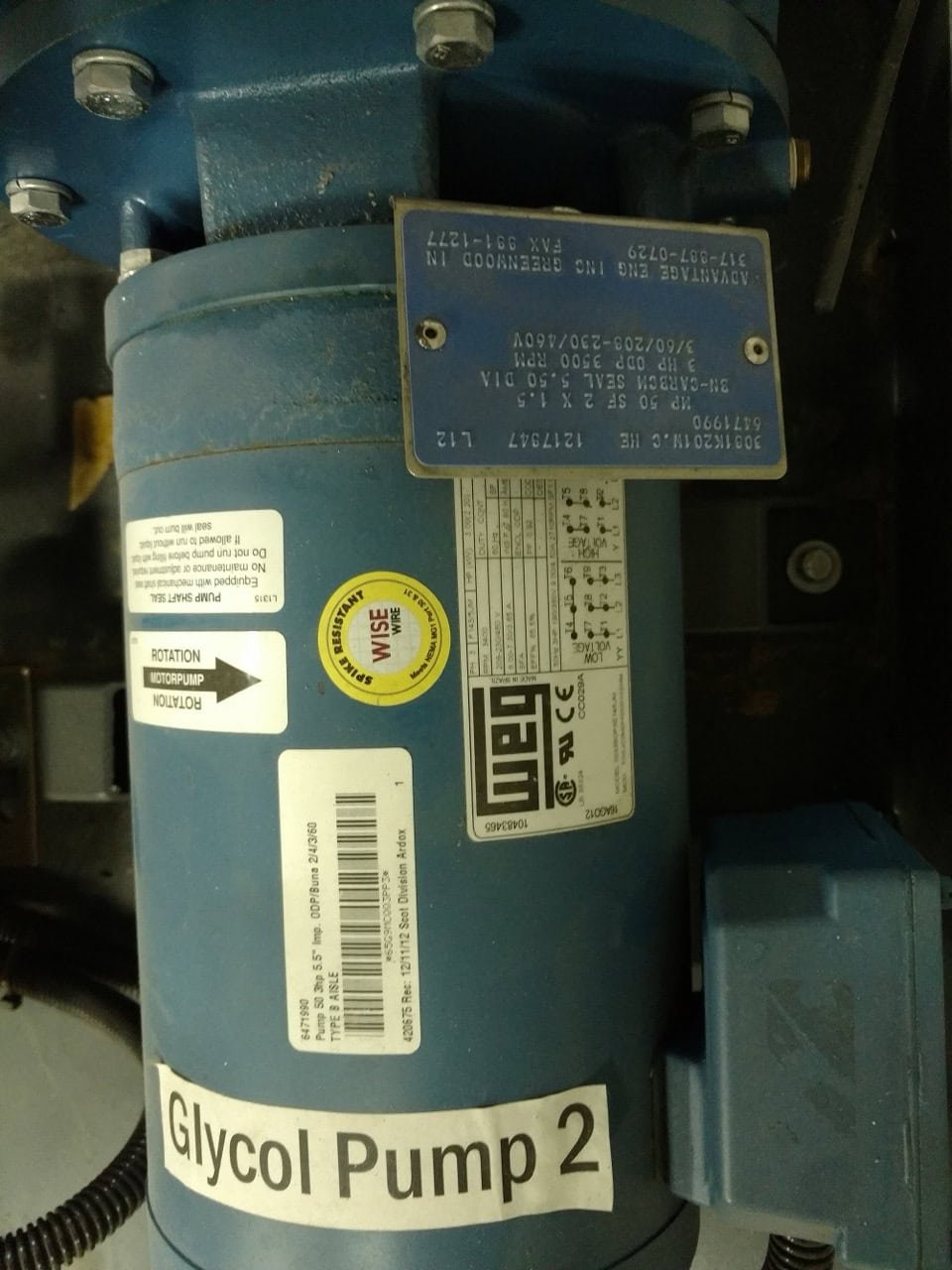 5hp pump for spare (backup for process or evaporator pumps)