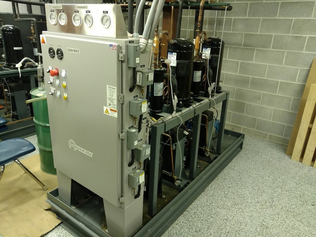 5 Compressor/evaporators are combined on 2 separate skids