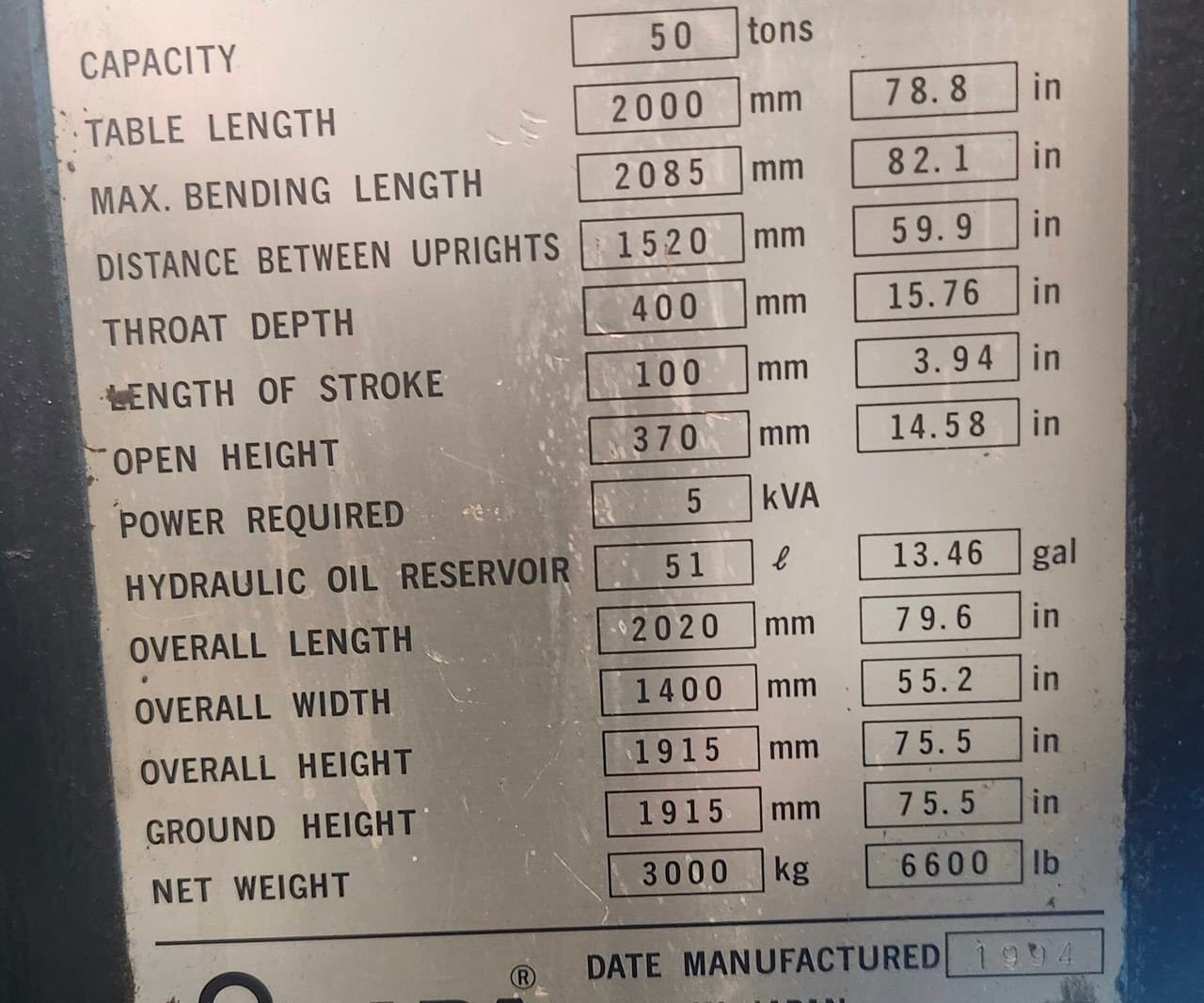 Capacity: 50 Tons