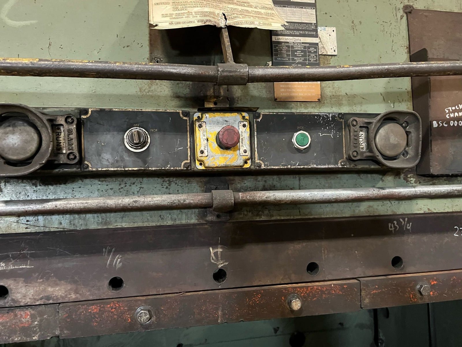Capacity: 500 Tons Overall Length: 10.5′ Stroke: 12″ Closed Height: 10″ Open Height: 22″ Distance below floor: 34″ Machine Dimensions: 14.5″ L, 8.5′ W, 11.5′ H Machine Weight: 81,300lbs