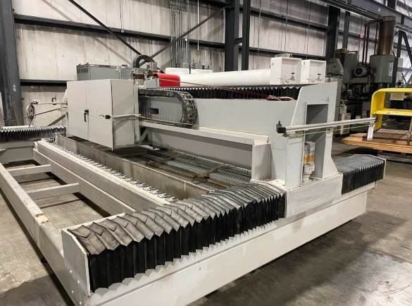 Dual Siemens AC servo motors with low backlash gearing, absolute encoder position feed- back, automatic lubricator, and electronic synchronization