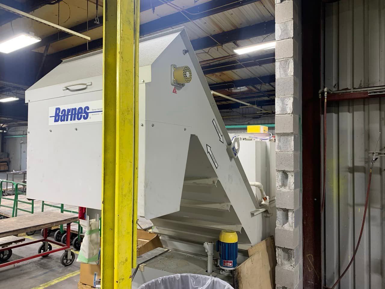 Conveyor/Drive: 1 HP motor w/ direct headshaft mounted reducer and prox switch overload detection.