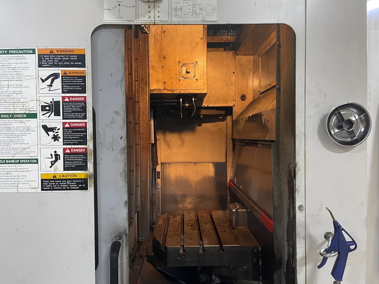 X: 22″ Y: 15.7″ Z: 22.4″ Power: 25 hp RPM: 12000 rpm ATC 30 Table: 28″x18.7″ Taper 40 Weight: 14,000 lbs Length: 124″ Width: 110″ Height: 100″