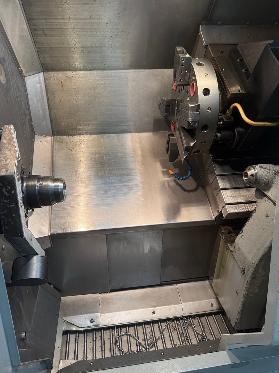 Chuck Size: 10″ Through Bore: 2.5″ Max Swing: 23″ Max Turning / Cutting Length: 20″ Max Cutting / Turning Diameter: 10.3″ X-Axis Travel: 8.45″ Z-Axis Travel: 20″ Spindle Speed: 4,000 RPM Spindle Motor: 30 HP Spindle Nose: A2-6 Turret: 10 Stations Equipped With: Haas CNC Control Tailstock C-Axis Tool Presetter Live Tool Ready