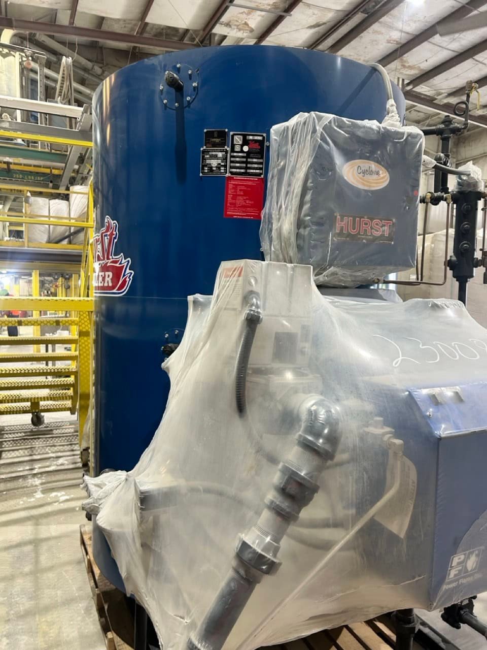 Hurst 1725 lb/hr Vertical Firetube Steam Boiler (2023) – With Honeywell V4062D Actuator, Never Used