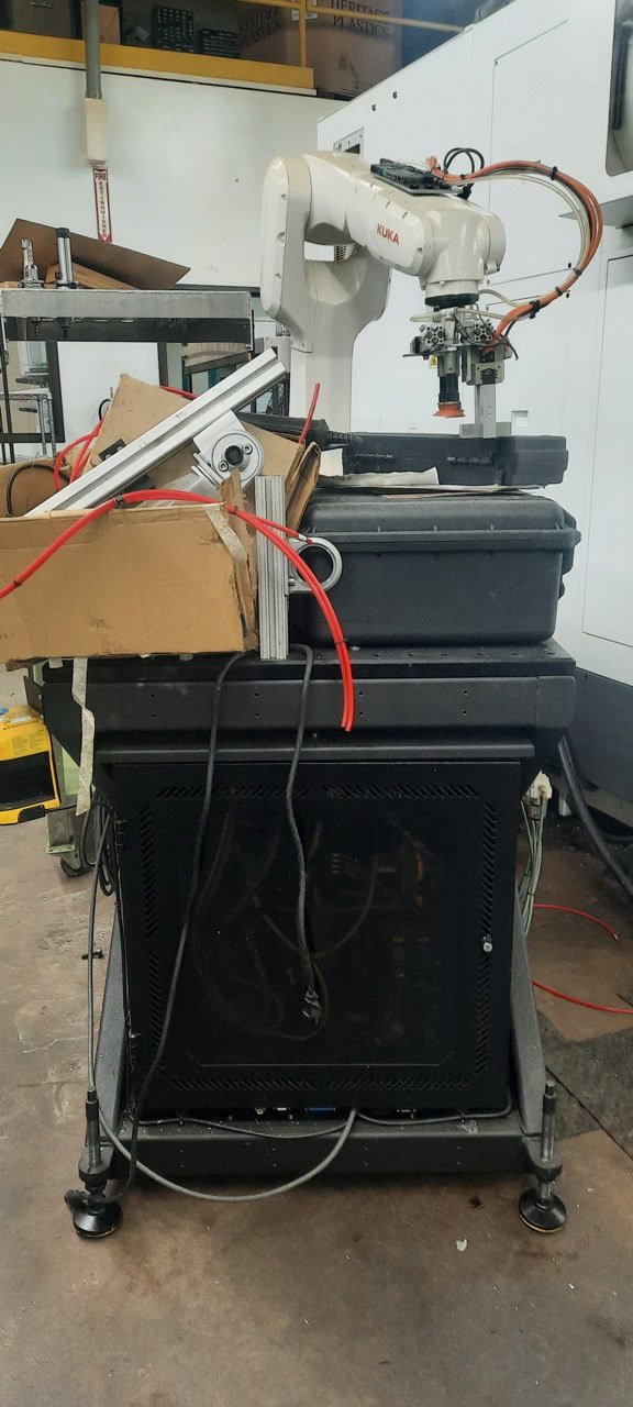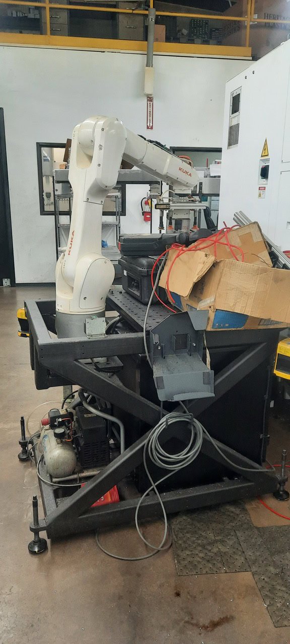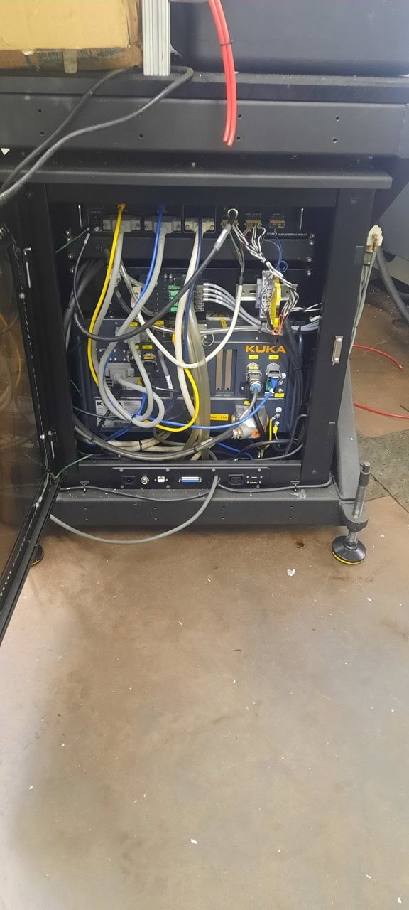 Maximum Reach: 43.35″ Maximum Payload: 24.5 lbs Repeatability: ±0.0008″ Number of Axes: 6 Robot Weight: ~121 lbs A1: ±170° A2: -190° to +45° A3: -120° to +156° A4: ±185° A5: ±120° A6: ±350° Equipped With: Kuka Teach Pendant