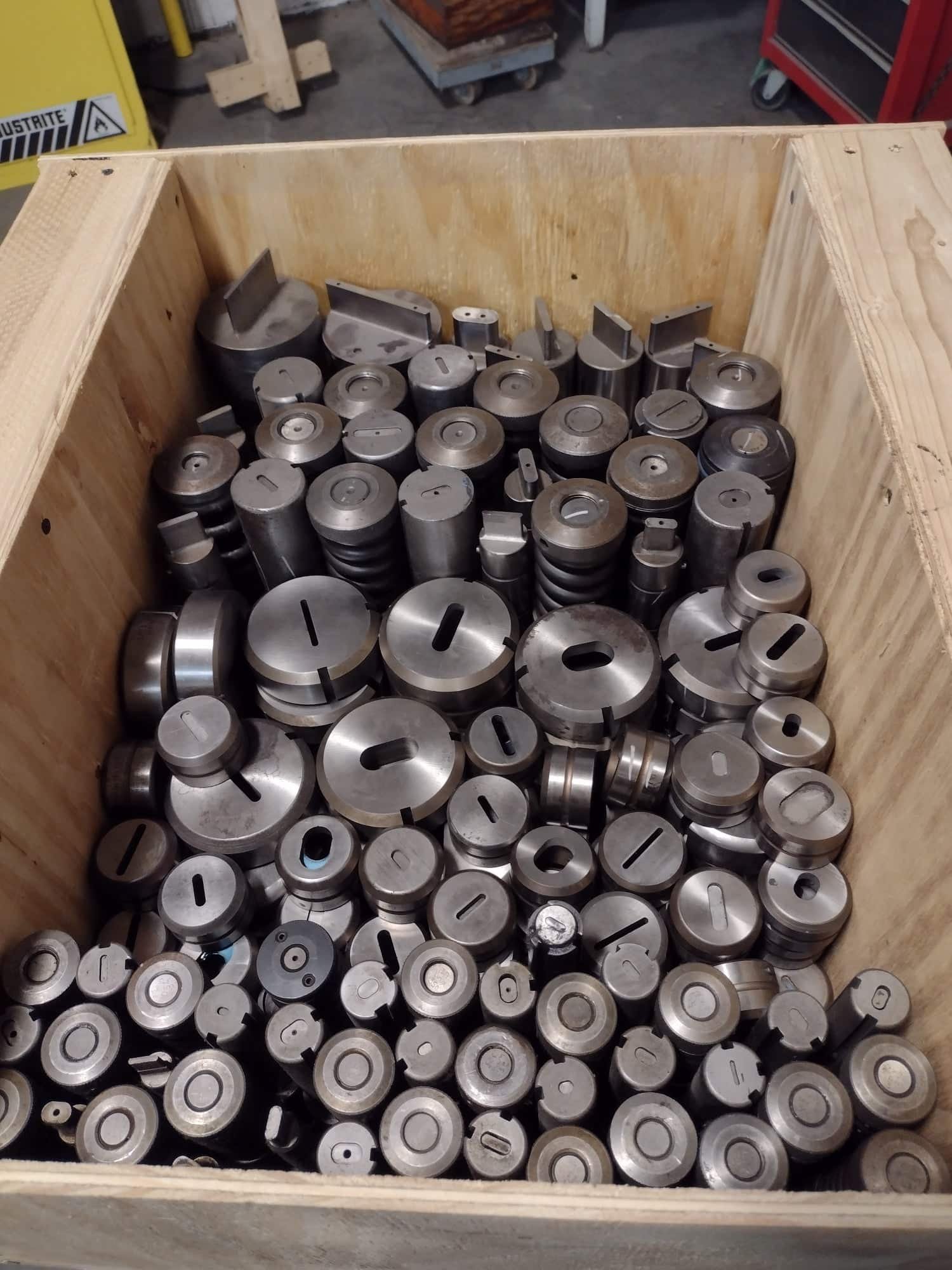 Machine Was Scrapped. Just Tooling for Sale! $100k+ of Used Nisshinbo 33 Ton Turret Punch Tooling. Crated. Please Review Photos for Inventory List!
