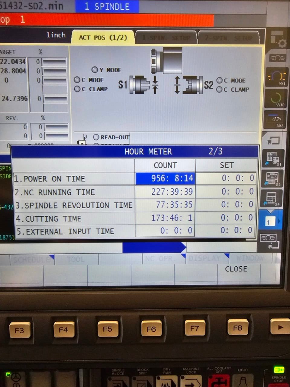 Spindle + Live tooling time: 173 hours and 46 minutes**