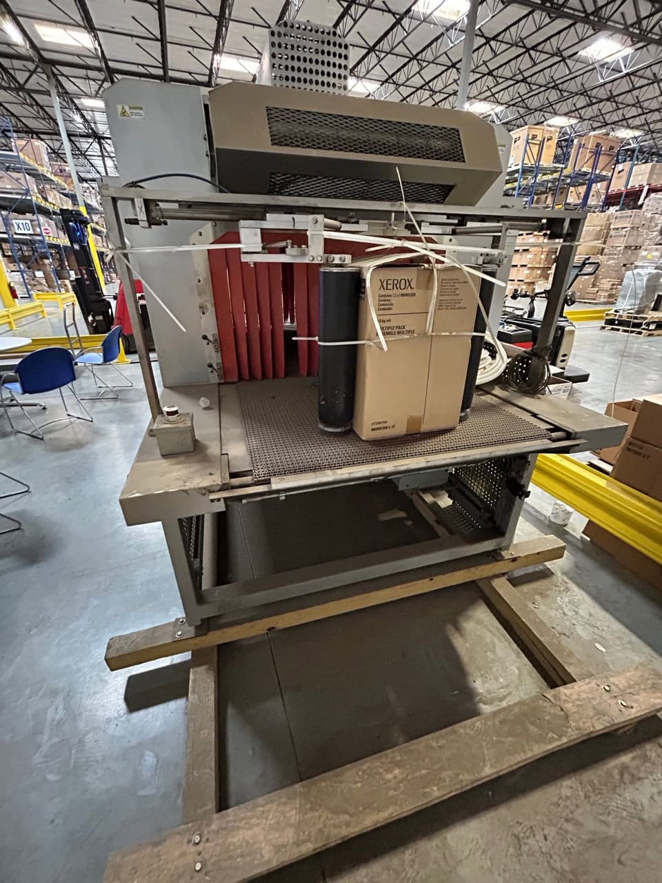 -Max Package Size: 30″ W x 12′ H x Infinite L -Max Film Width Size: 35″ -Max Film Roll Diameter: 14″ -Film Core Size: 3″ -Tunnel Opening: 40″ W x 16′ H -Electrical Requirements: 480V, 3P, 60Hz -Dimensions: Approx 189″ x 110″ x 89″