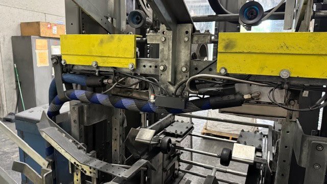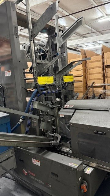 Presently set up to run 3 piece bliss cases, 22-1/16″ x 14-5/8″ x 5-9/16″ at a rate of 20 bliss cases per minute