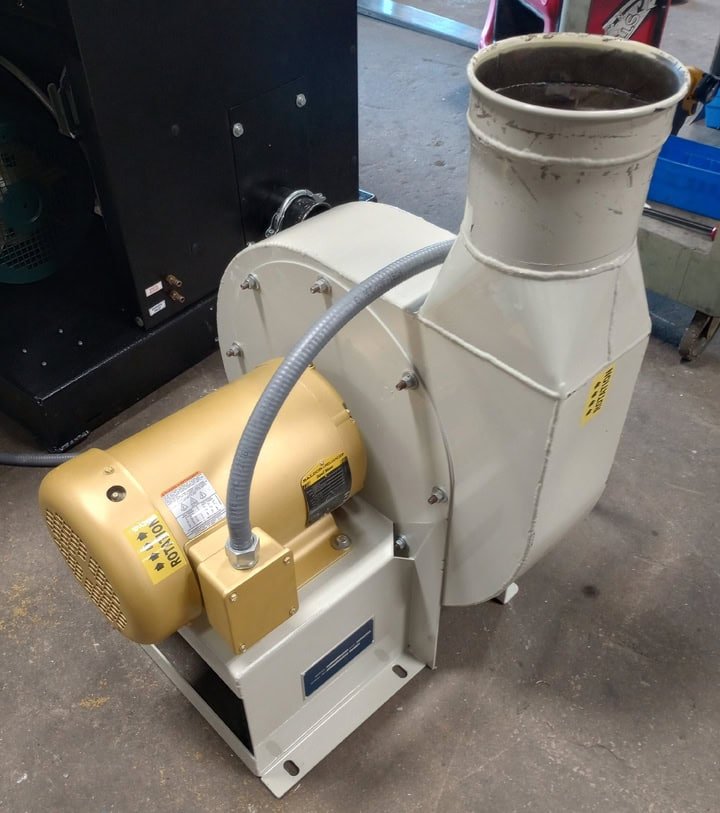 Additional Information: Water-cooled cutting chamber, sound dampening enclosure, 5 HP evacuation blower and large cyclone on stand.